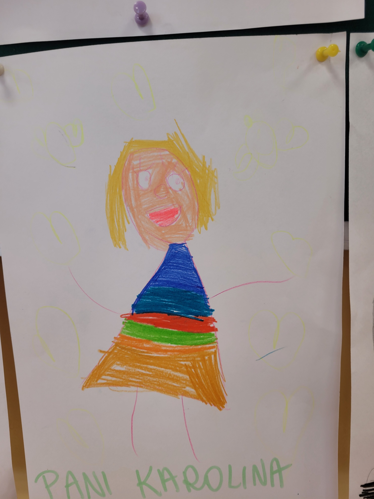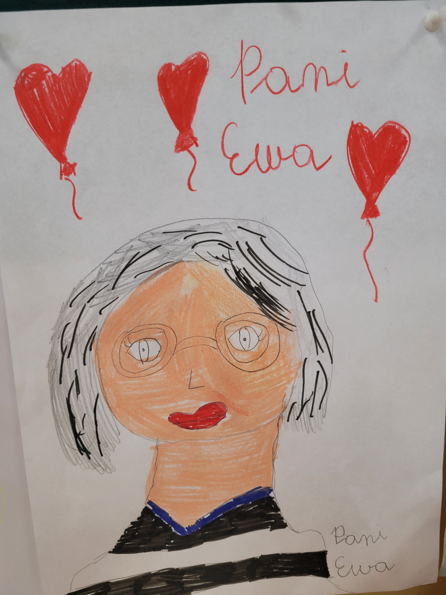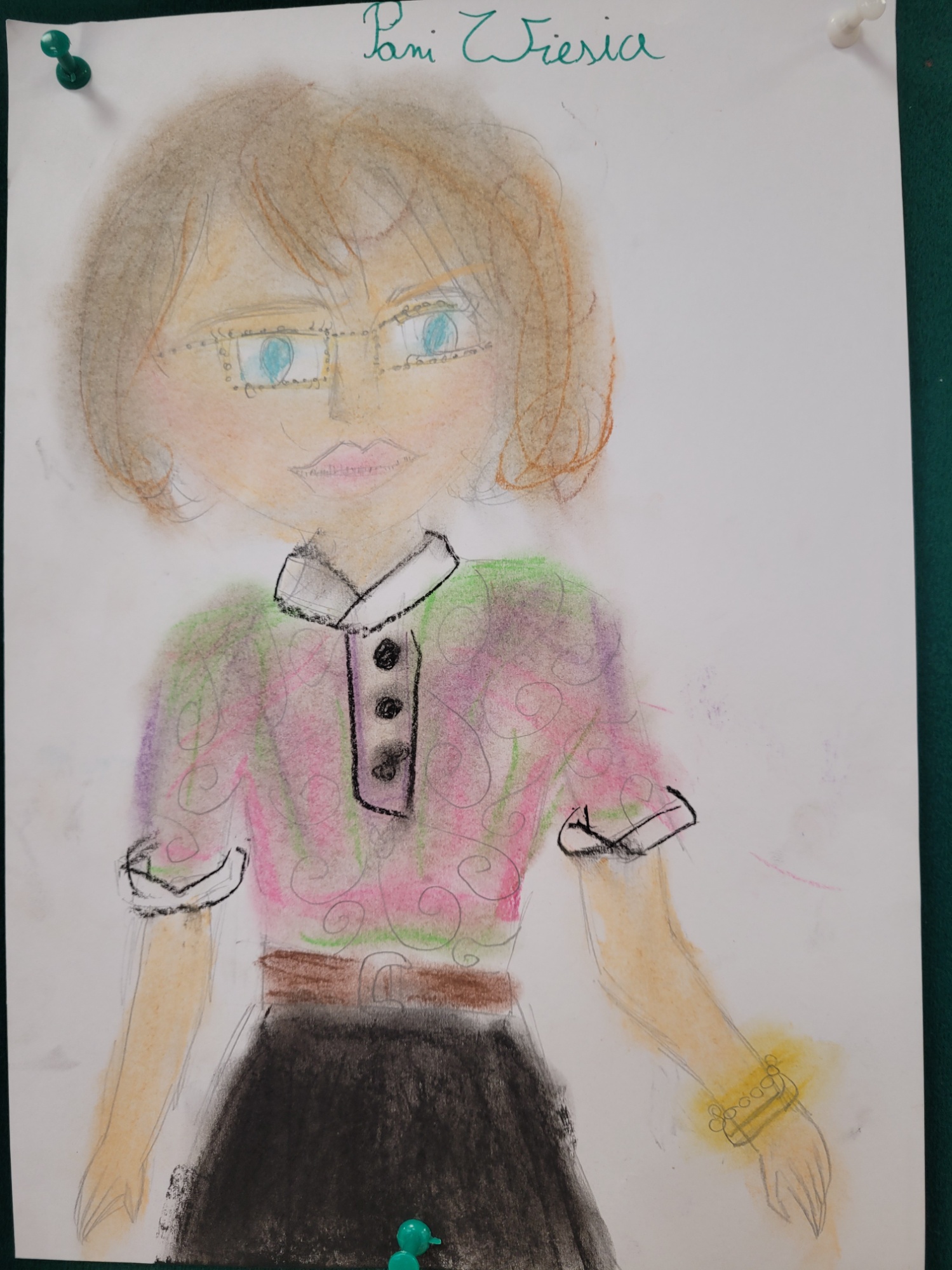 - Z okazji Dni Edukacji Narodowej uczniowie przygotowali portrety nauczycieli. Mogliśmy podziwiać je na gazetce w sali świetlicy. Cieszymy się, że uczniowe widzą nas w samych kolorowych barwach.