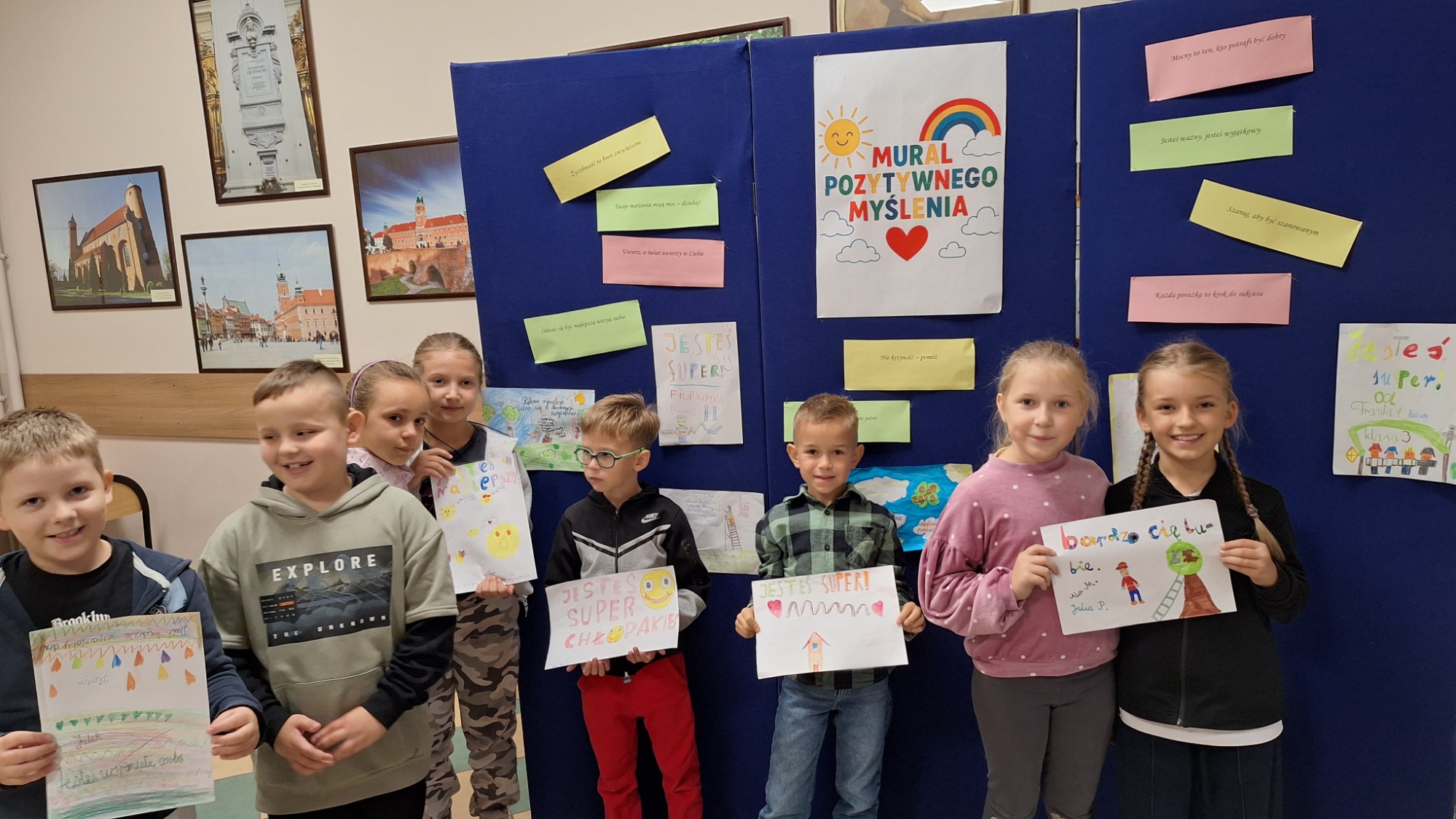 - młodsze klasy stworzyły wyjątkowy Mural Pozytywnych Myśli, pełen kolorów, radości i życzliwych przesłań,